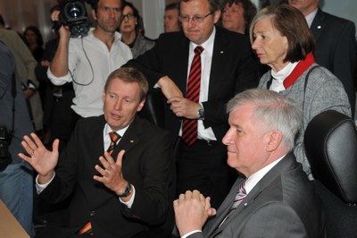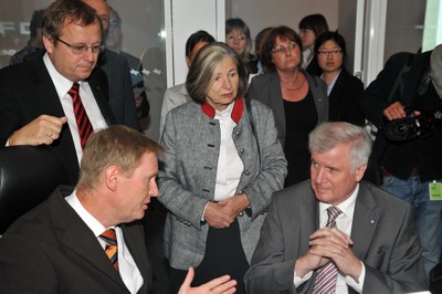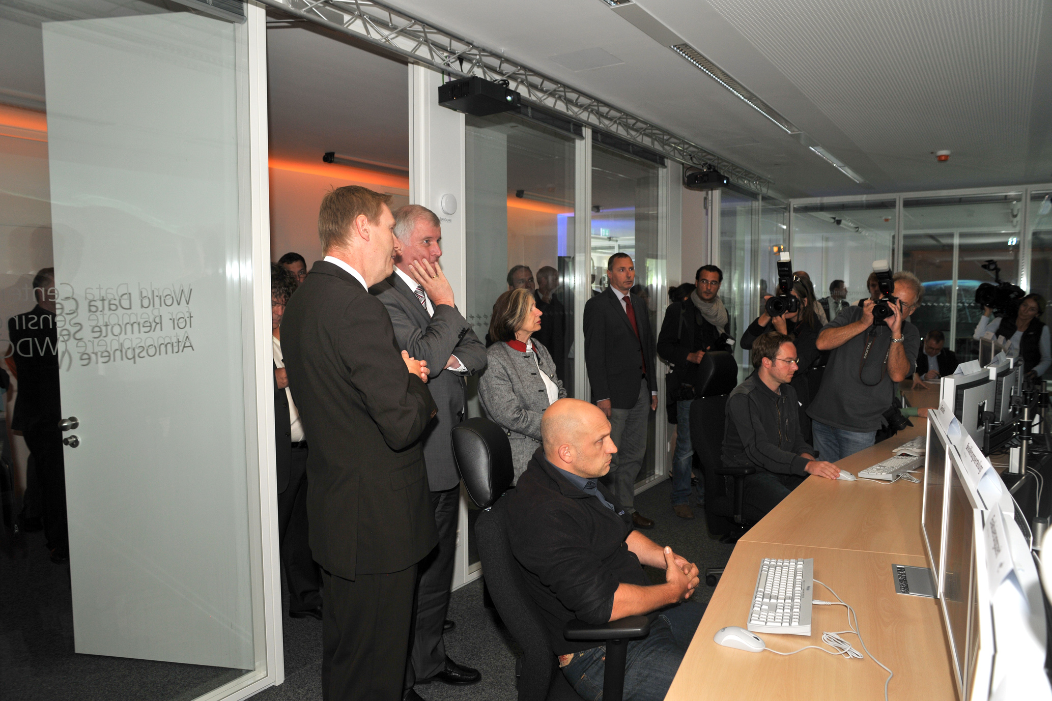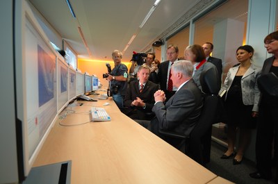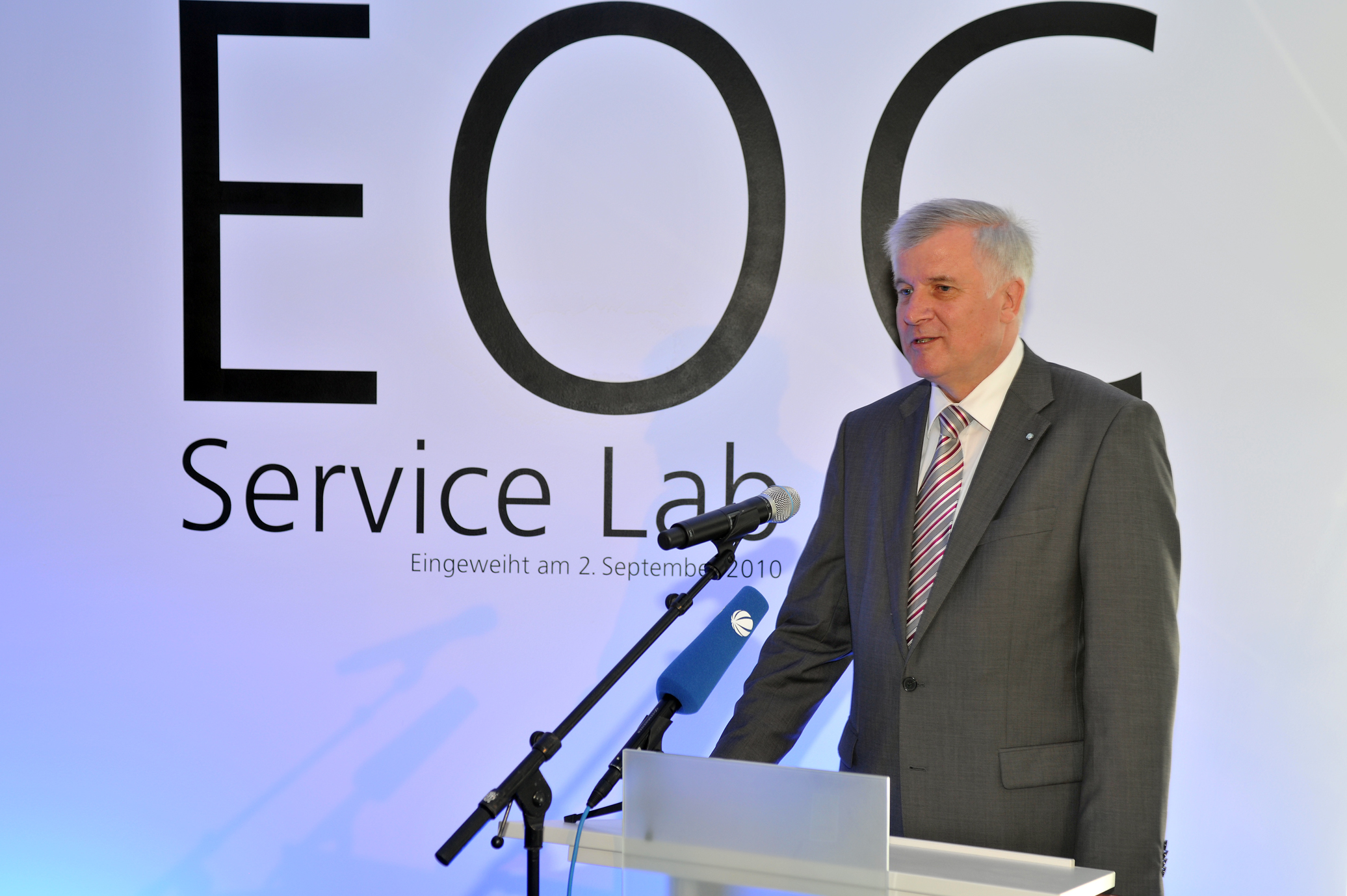 Am 2. September wurde das "EOC Service Lab" des DLR in Oberpfaffenhofen vom bayerischen Ministerpräsidenten Horst Seehofer in Anwesenheit zahlreicher Vertreter von Presse, Fernsehen und Radio eröffnet. Er wurde begleitet von Frau Dr. Männle (MdL) und Dr. Gruppe (StMWIVT). Der Vorstandsvorsitzende des DLR, Prof. Wörner begrüßte die Gäste und hob in seiner Ansprache die besondere Bedeutung der neuen Einrichtung für die Anwendung der Raumfahrttechnologien im Dienste der humanitären Hilfe hervor. Prof. Dech, der Direktor des Deutschen Fernerkundungsdatenzentrums DFD führte anschließend durch die Anlagen und erläuterte die Services des World Data Centers WCD-RSAT beim Monitoring der Luftqualität, die Komponenten und die Wirkungsweise des deutsch-indonesischen Tsunami Warnsystems GITEWS und den aktuellen Einsatz des Zentrums für satellitengestützte Kriseninformation ZKI im Rahmen der Hilfe für die pakistanischen Flutopfer.