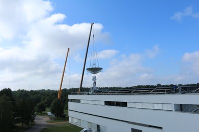 In einer nicht alltäglichen Aktion ist eine der drei X/S-Band Antennen des DFD in Neustrelitz von seinem bisherigen Standort auf das Dach des Neubaus umgesetzt worden. Der Umzug komplettiert das Gebäude 206 am Standort Neustrelitz.