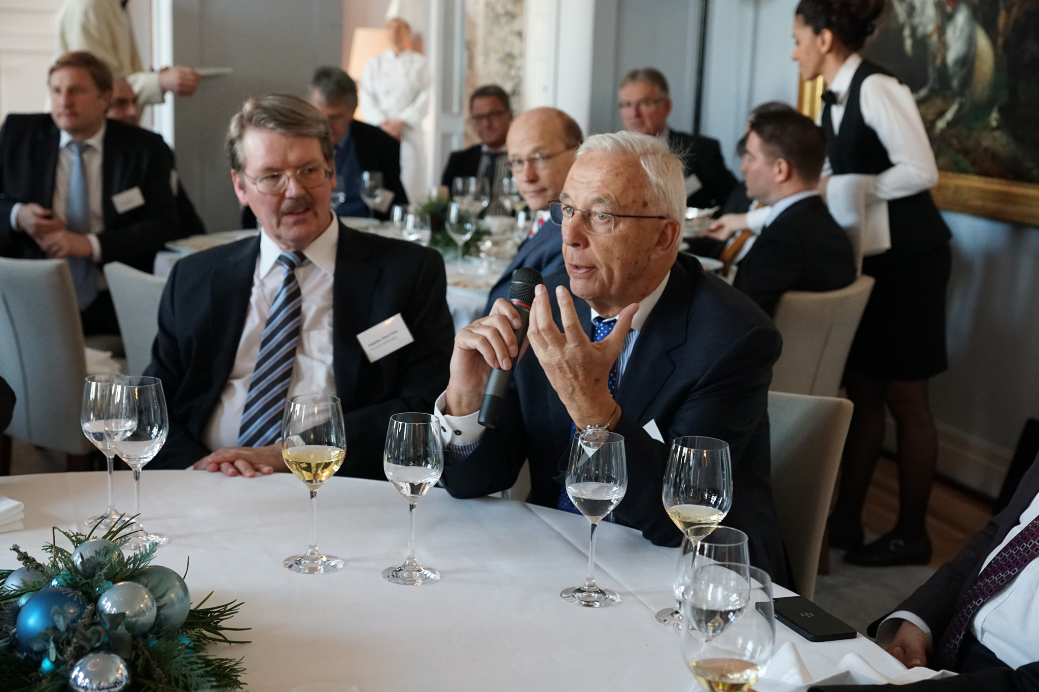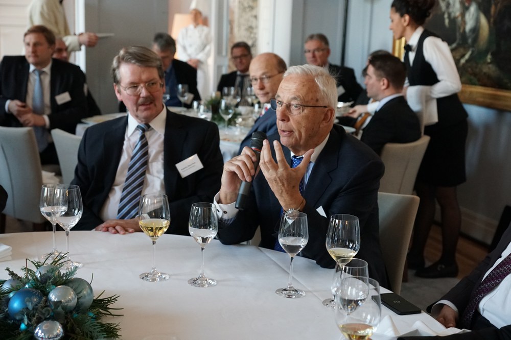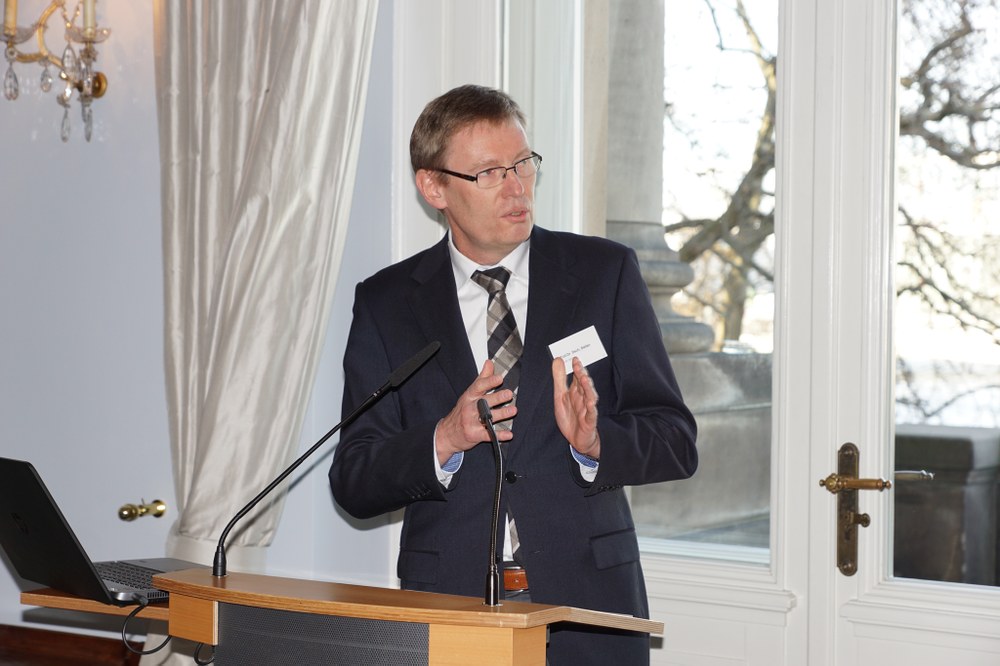 Traditionell eröffnete der Vorsitzende der Parlamentsgruppe für Luft- und Raumfahrt (PGLR), Klaus-Peter Willsch MdB, das Mittagessen mit einem kurzen Grußwort. Nach einer kurzen Einführung über die Grundzüge des DLR und die Schwerpunkte, die Prof. Ehrenfreund in der Zukunft setzen möchte, gab Prof. Dech einen Überblick über Anwendungsbeispiele der Erdbeobachtung zur Lösungen der globalen Herausforderungen. Er zeigte u.a. Messungen der Entwicklung des Ozonlochs, Satellitenaufnahmen von der Ausbreitung eines Ölteppichs, sowie ein 3D-Modell der Erde. Letzteres diene in vielen Anwendungsbereichen, wie der Landwirtschaft, bei Sicherheitsfragen und im Krisenmanagement als Planungsgrundlage. Am Beispiel eines Satellitenbildes des Burj Khalifa in Dubai verdeutlichte Dech die hohe Auflösung der Satellitenbilder. Darüber hinaus erläuterte er maritime Anwendungen, wie das Detektieren von sogenannten nichtkooperativen Schiffen sowie das globale Monitoring von Stickstoffdioxid (Schadstoff) Veränderungen.