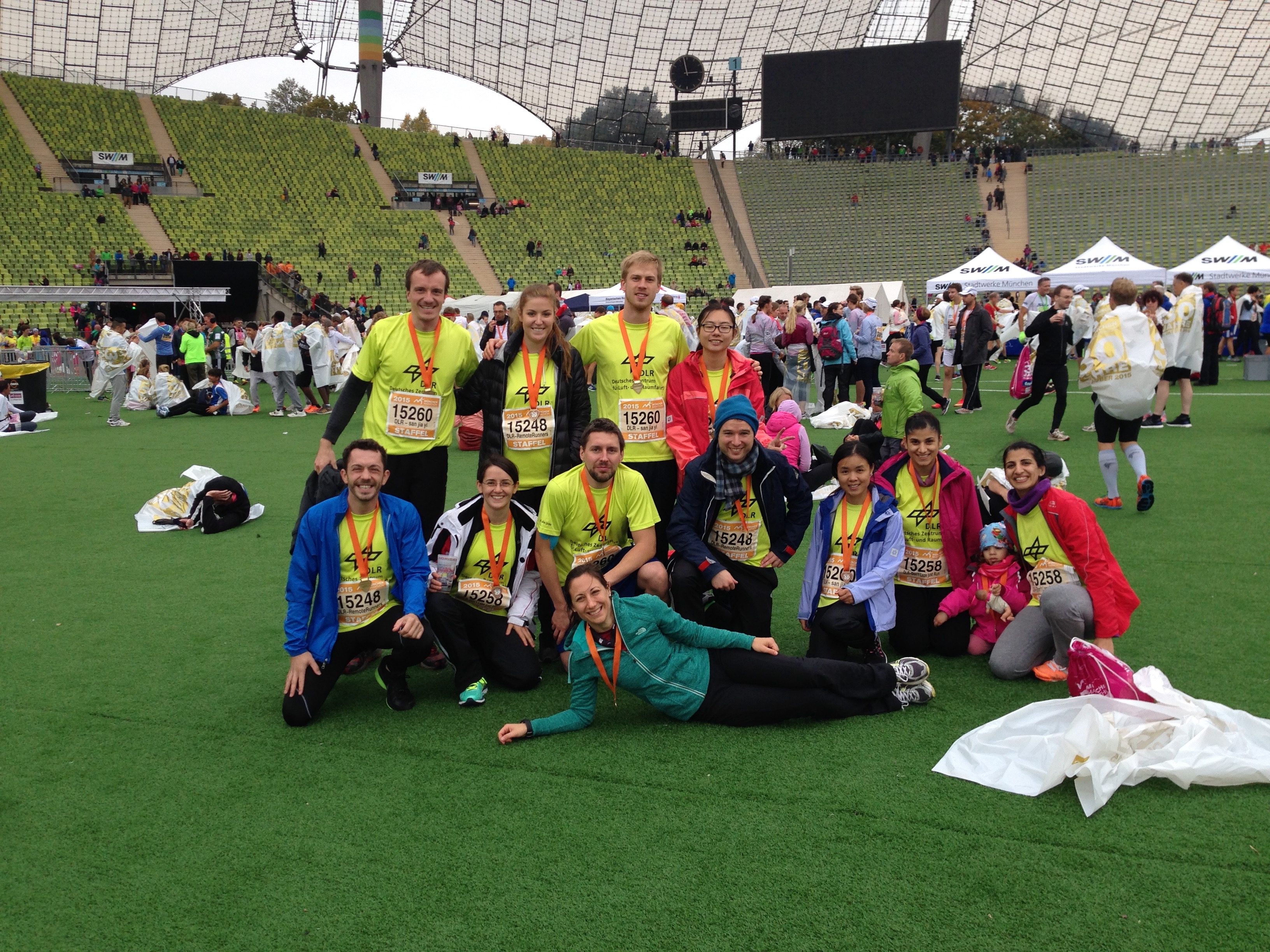Dieses Jahr feierte der München Marathon sein dreißigjähriges Bestehen. Mit dabei: Wissenschaftlerinnen und Wissenschaftler des IMF. Sie nahmen an der Marathonstaffel teil, bei der sich Firmen, Vereine oder Laufgruppen die Originalstrecke aufteilen können. Drei IMF-Teams liefen jeweils zu viert den Gesamtmarathon, wobei auf die einzelnen Läufer Distanzen von 6,8km, 14,5km, 10,8km, und 10,1km entfielen.