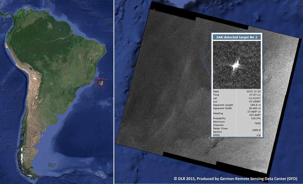Diese „Live“-Übertragung als Teil einer möglichen Nahe-Echtzeit-Anwendung wurde erstmals mit dem Sentinel-1-Satelliten und der EDRS-Vorläufertechnologie, TDP1 auf Alphasat, demonstriert. Eine Szene, aufgenommen vor der Küste Brasiliens, wurde über Laser zum Alphasat-Satelliten und von dort über ein Mikrowellensignal im KA-Band an die DFD-Bodenstation in Oberpfaffenhofen übertragen. Direkt im Anschluss erfolgte die Übertragung per Netzwerk nach Neustrelitz, wo die Prozessierung und Auslieferung der Produkte erfolgte. Nach nur 13 Minuten lag das Satellitenbild vor; nur fünf Minuten später konnte das abgeleitete Informationsprodukt, in diesem Fall eine automatische Detektion von Schiffen, ausgeliefert werden: Angesichts der großen Datenmengen und der rechenintensiven Prozesse für die Bild- und Produktgenerierung ein hervorragendes Ergebnis.