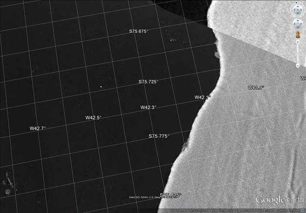 RV Polarstern ist in dieser TerraSAR-X Aufnahme vom 15.01.2016 als kleiner weißer Punkt westlich des Eisbergs A23a im Weddellmeer zu erkennen. TerraSAR-X
