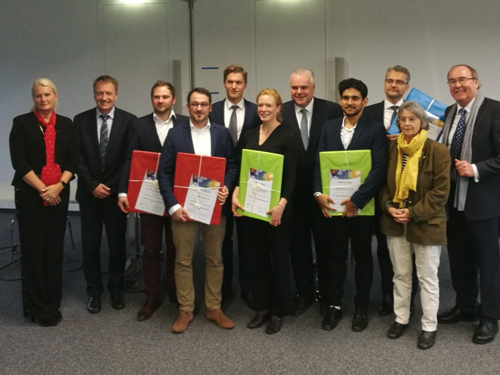 Von links.: Prof. Dr. Pascale Ehrenfreund, Klaus Hamacher, Henrik Borgwardt, Arne Stahl, Thorben Fabian (Preisstifter-ASTO-Aero-Förderpreis), Celia A. Baumhoer, Ekkehart Fabian (Preisstifter-ASTO-Aero-Förderpreis), Sushil Kumar Joshi, Christoph Laage, Edeltraut und Franz X. Erlacher (Preisstifter- Franz-Xaver Erlacher-Förderpreis)