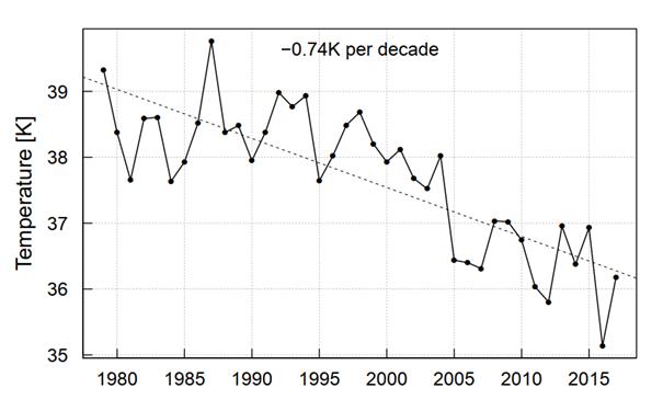 Derzeit steigen die Temperaturen an den Polen deutlich stärker als in der Äquatorregion. Der Temperaturunterschied zwischen Nord und Süd wird geringer und nimmt um etwa 0,7 Kelvin bzw. Grad Celsius pro Dekade ab (siehe Abbildung 3).