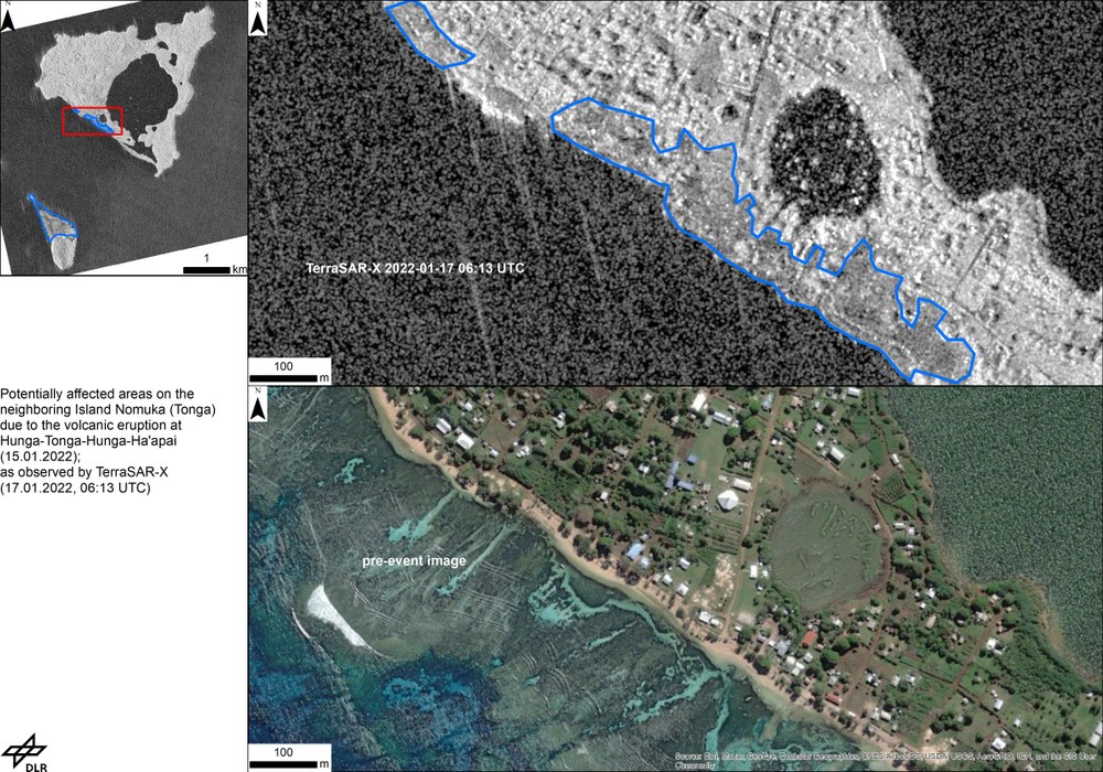 Die von Hunga Tonga Hunga Ha’apai verursachte Flutwelle wütete vor allem auf Tonga, gelangte jedoch auch bis nach Südamerika. Auch die EOC-Mannschaft der antarktischen DLR-Empfangsstation GARS O’Higgins und der benachbarten chilenischen Antarktisstation mussten evakuieren, da die Stationen sehr tief liegen. Sie harrten gemeinsam 10 Stunden in einem Versorgungsdepot aus, das auf einer Anhöhe ca. 15 Meter über dem Meer steht.