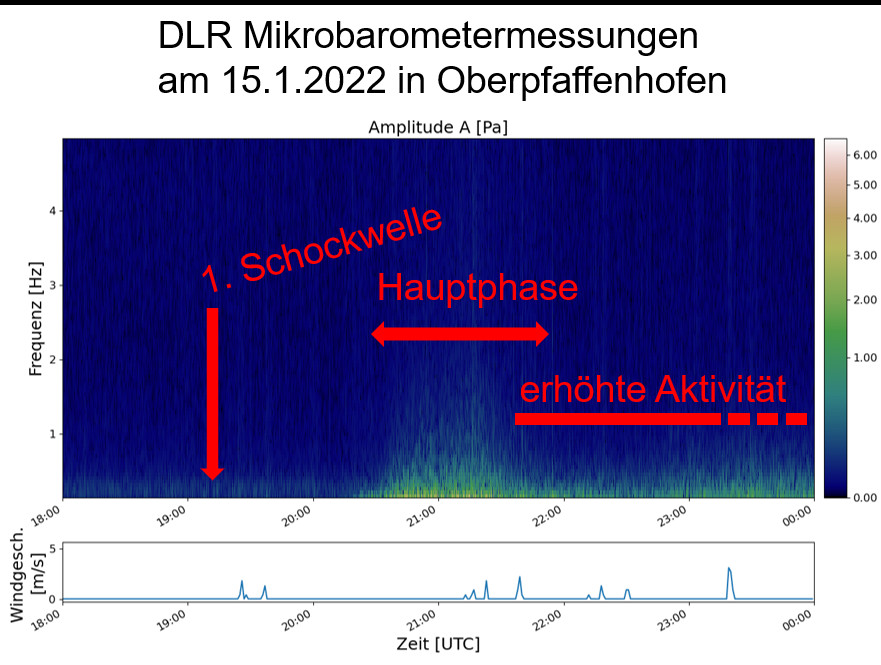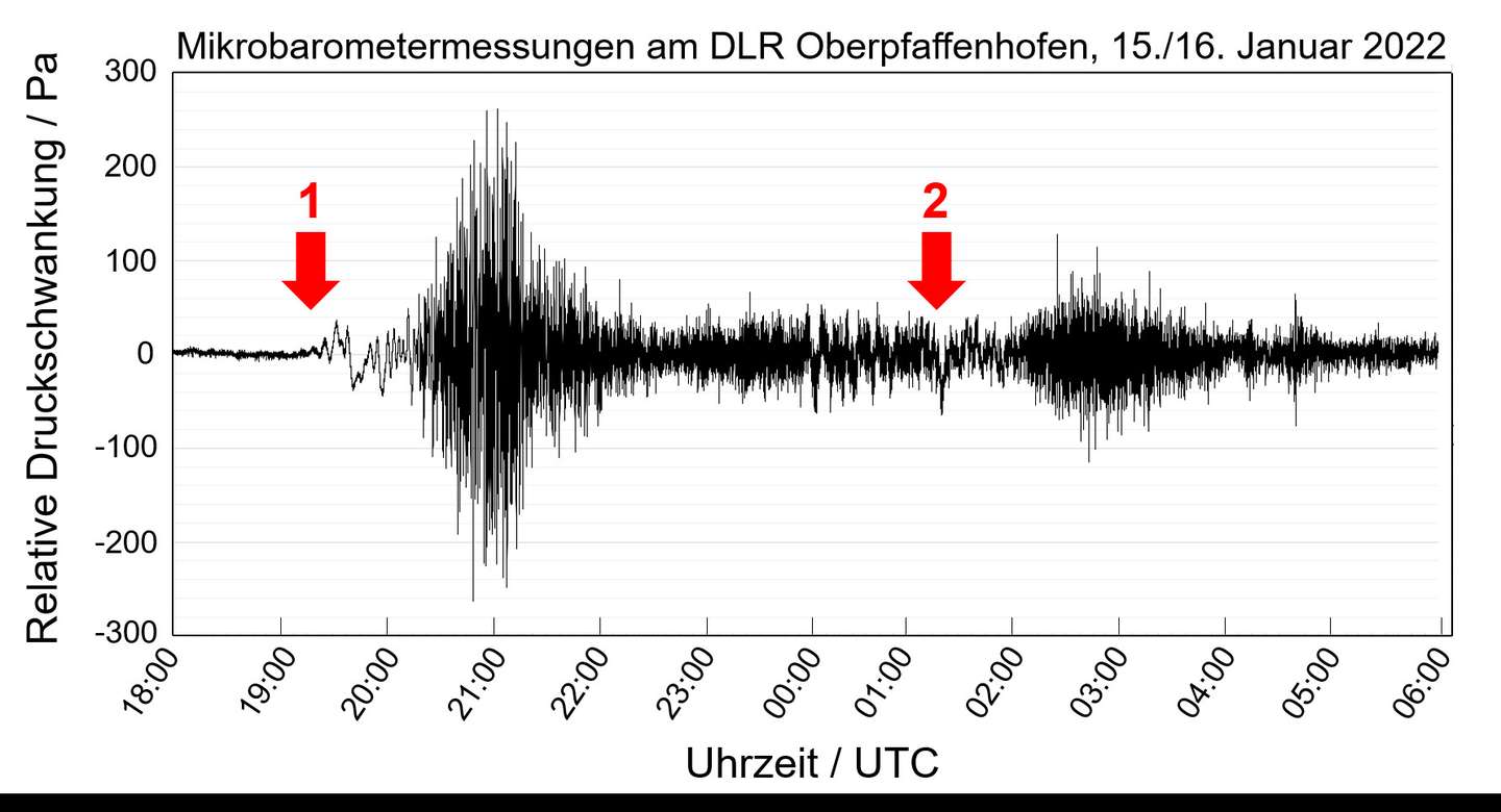 Im Zuge der Vorbereitung dieser Mission testeten die Forscherinnen und Forscher in Oberpfaffenhofen gerade einen Mikrobarographen, als die massive Eruption im Südpazifik erfolgte. Das Gerät nimmt feinste Schwankungen des Luftdrucks an der Erdoberfläche wahr und soll die optischen Messungen der DLR-Instrumente FAIM und GRIPS in Chile ergänzen.