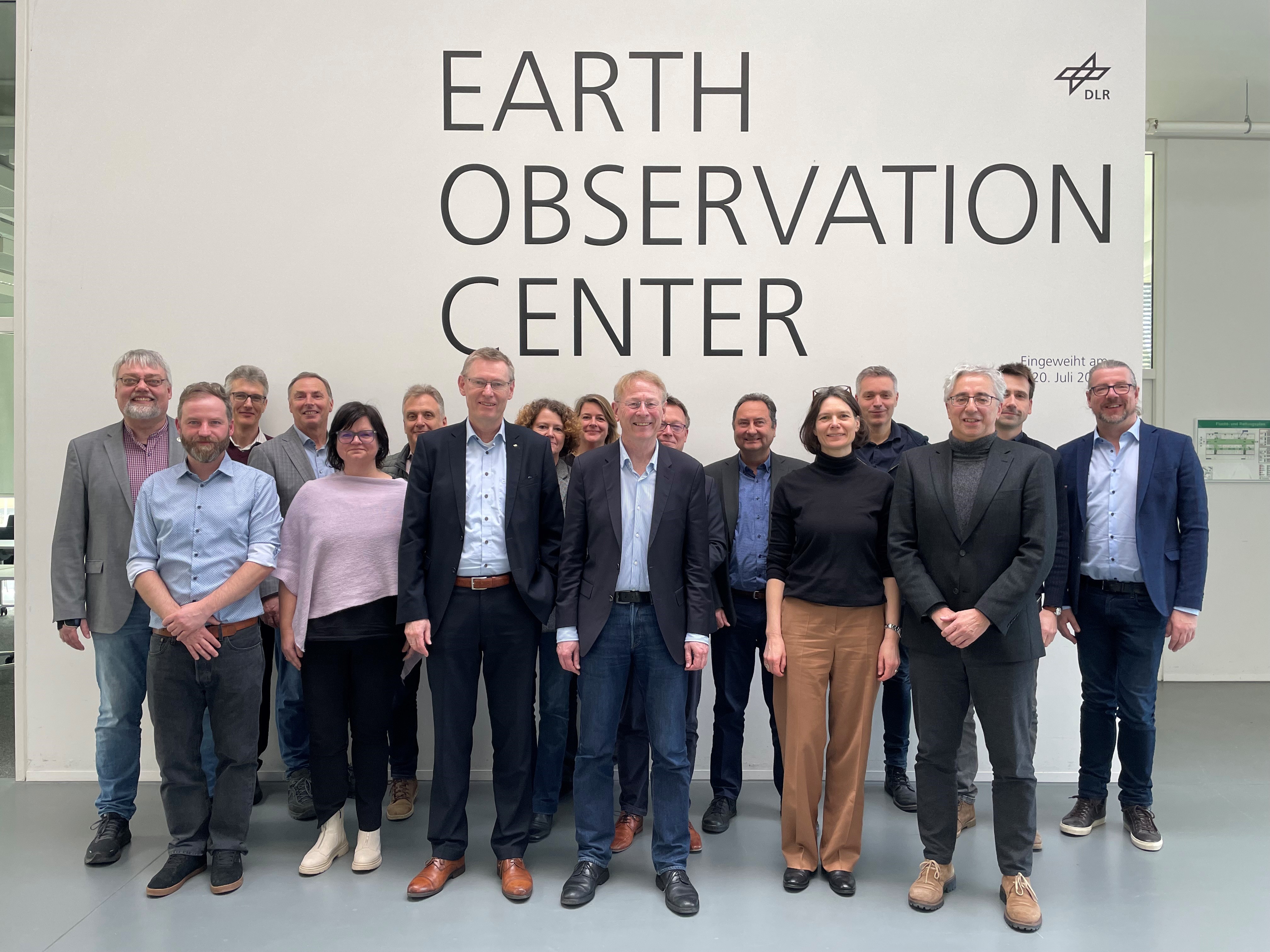 Am 6.2. begrüßte das EOC eine Leitungsdelegation um den Präsidenten des Bundesamts für Kartographie und Geodäsie, Prof. Paul Becker. Im Treffen mit Führungskräften beider Einrichtungen wurden wichtige Felder der Zusammenarbeit auf dem Gebiet der Nutzung von Fernerkundungsdaten für die öffentliche Verwaltung besprochen und Potentiale für künftige Themen ausgeleuchtet.