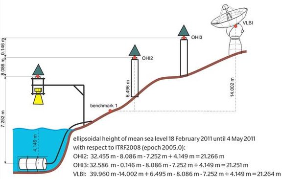 In Kombination mit den Lösungen der GNSS-Stationen OHI2 und OHI3 sowie der VLBI-Antenne lässt sich die ellipsoidische Höhe des mittleren Meeresspiegels ermitteln. Sie beträgt je nach Lösung zwischen 21.251 und 21.266 Meter über der Oberfläche des WGS 84-Referenzellipsoids und entspricht der Höhe des Geoids plus der mittleren dynamischen Topographie der Meeresoberfläche.