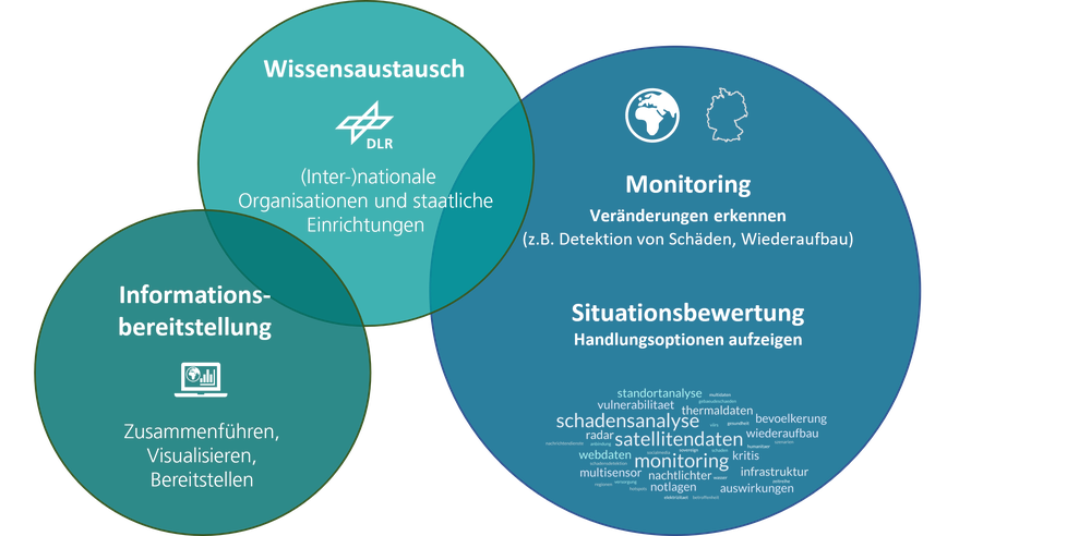 Um in komplexen Krisen handlungsfähig zu bleiben, benötigen staatliche und nicht-staatliche Akteure aktuelle und räumlich explizite Informationen. Das DLR-intern geförderte Projekt SOVEREIGN baut auf die Expertise des DLR in der Erdbeobachtung, aber auch der Erfahrung in der Auswertung weiterer Datenquellen sowie dem Schutz kritischer Infrastrukturen auf und trägt damit bedeutend zur Handlungsfähigkeit relevanter Akteure im Krisenfall bei.