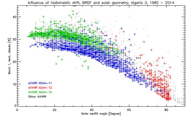 Sowohl die NOAA-POES, als auch die MetOp Satelliten, fliegen auf einer sonnensynchronen Umlaufbahn mit einer nominalen Flughöhe von 833km/820km (POES/MetOp). Die POES-Satelliten mit einer geraden Zahl überfliegen anfänglich den Äquator um ca. 7:30 Uhr (wahre Ortszeit), diejenigen mit einer ungeraden Zahl überfliegen den Äquator ca. um 02:30 und 14:30 Uhr (wahre Ortszeit). Die MetOp-Satelliten überqueren den Äquator um ca. 09:30 Uhr (wahre Ortszeit). Einige der NOAA-Satelliten unterliegen einem beträchtlichen Orbit-Drift - die Überflugs-Zeiten verschieben sich dort mit dem Altern des Satelliten. Daraus resultieren unterschiedliche Sonnenstände während der Aufnahmen, was einen starken Einfluss auf die gemessenen Reflektanzen hat.