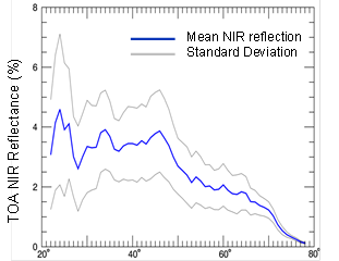 Große Wasserflächen, die mit AVHRR detektiert werden, zeigen eine relative starke Schwankung bezüglich ihrer Reflektions-Eigenschaften. So variiert z.B. die mittlere Reflektion im Nahen Infrarot (NIR) einer Szene in Abhängigkeit des Breitengrades, des Längengrades und des Aufnahmewinkels.