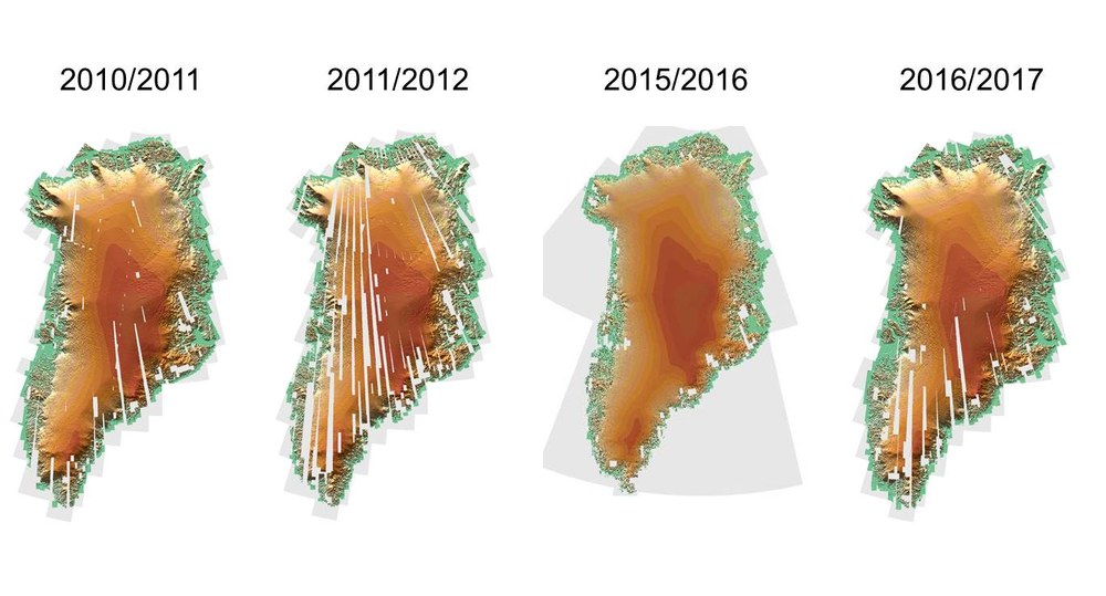 Insbesondere die arktischen Eisfelder reagieren zurzeit rasant auf die Erwärmung der Atmosphäre. Daher ist die Erfassung der Dynamik der Eisschilde ein weiteres wichtiges Anwendungsfeld für SAR-Daten und Höhenmodelle. Ungefähr 60% der Massenänderung in Grönland lassen sich auf eine Höhenabnahme der Oberfläche zurückführen. Mit Hilfe der TanDEM-X Höhenmodellen über Grönland, die für einen fest definierten Zeitraum berechnet wurden, können detaillierte Analysen durchgeführt werden und dienen somit einem besseren Verständnis über die Höhenänderungen des Eisschildes. Aufgrund der Eindringtiefe des SAR-Signals in Schnee und Eis, muss die interferometrisch abgeleitete SAR-Höhe kalibriert werden, um zuverlässige Höhenänderungen abzuleiten. Das Team „SAR-Topographie“ entwickelt Ansätze, die Ein-dringtiefe des Signals abzuschätzen und somit zu korrigieren.