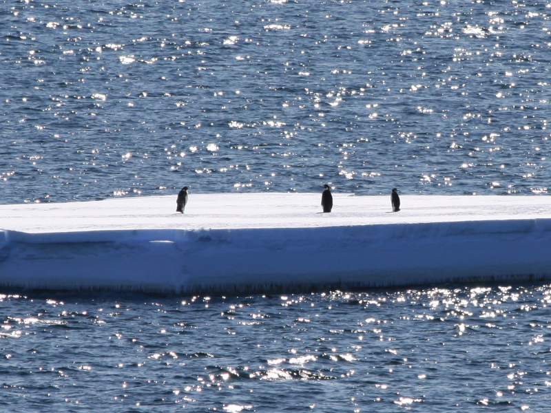 Bis schließlich aus diesen zerbrechlichen, Wellen und Wind ausgesetzten Vorboten des Meereises eine zusammenhängende Eisdecke entsteht, bedarf es noch einiger Wochen Zeit. Mit den in Bälde wieder sinkenden Temperaturen und besonders mit Einsetzen der Polarnacht wird Meereis den antarktischen Kontinent wieder für einige Monate fest umschließen. Dieses bildet dann den Lebensraum für Pinguine und Robben, die auch in den Wintermonaten hier heimisch sind. Solange müssen sie auf den Meereisresten des vergangenen Winters ausharren und genügend Fettreserven für die wirklich kalte Jahreszeit anlegen!