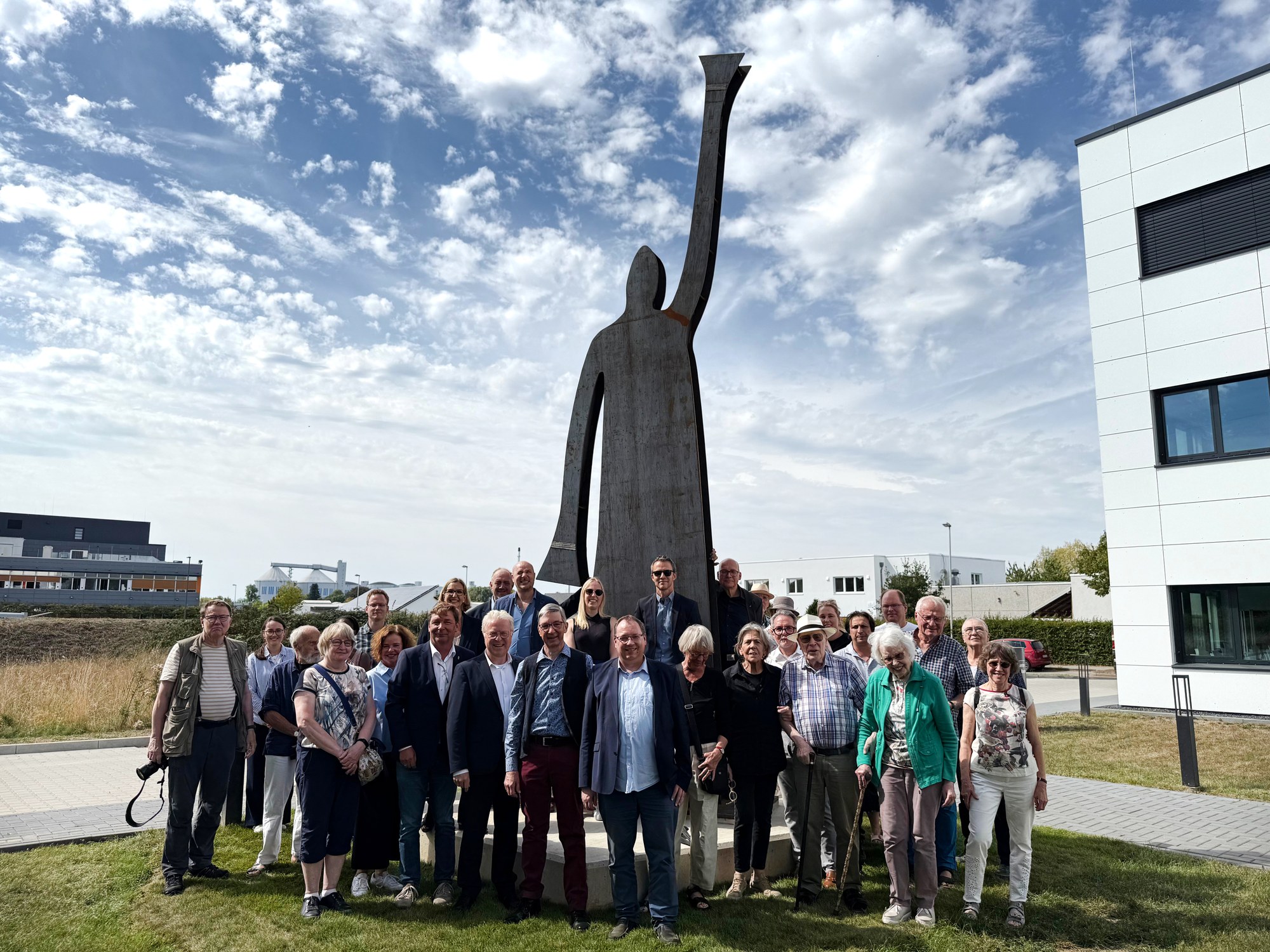 Bei der Einweihung des Sonnenfänger kamen der Initiativkreis, der Bürgermeister Axel Fuchs und Institutsdirektor Bernhard Hoffschmidt zusammen.