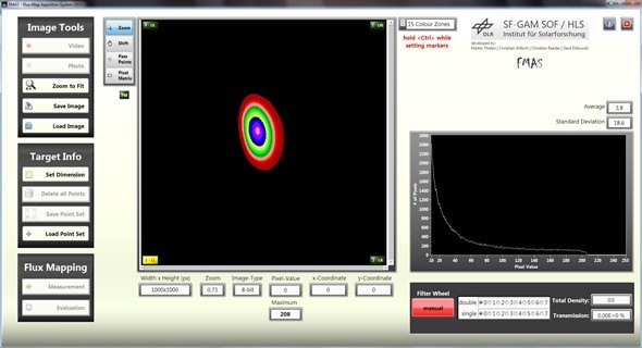 Das Anfang 2016 neu eingeführte, eigens entwickelte Messsystem FMAS (Flux Mapping Acquisition System) löst das bisherige Messsystem FATMES ab. FMAS ist ein portables Messsystem, das eine schnelle und unkomplizierte Bestimmung der Flussdichte sowohl im Sonnenofen und den beiden Hochleistungsstrahlern des Instituts als auch bei dezentralen Anwendungen ermöglicht. Seit 2017 wird diese Software auch in der Großanlage Synlight am Standort Jülich eingesetzt.
