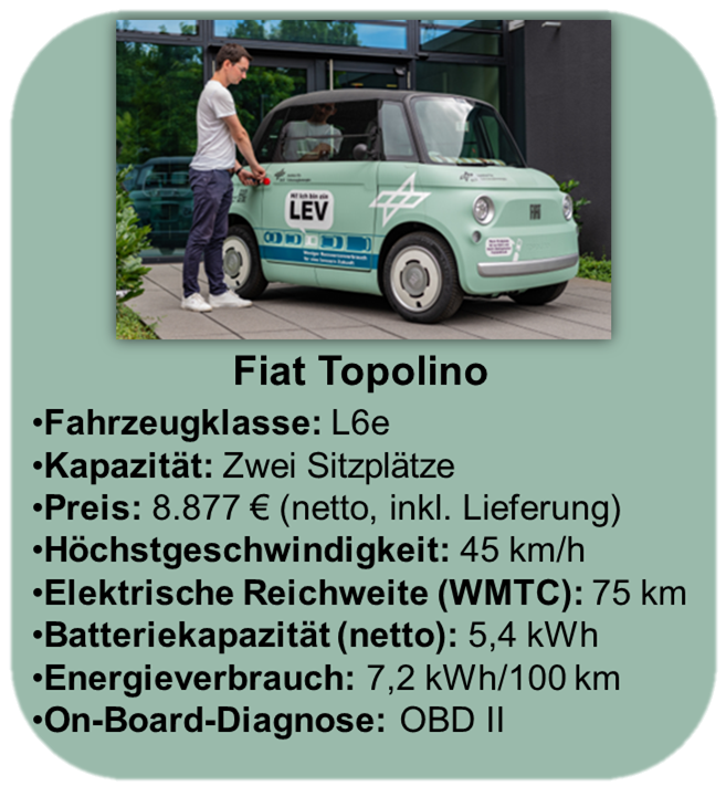 Für die Erhebung von Daten zur Nutzung von Microcars kommen am Institut zwei Serien-Microcars zum Einsatz: Den Fiat Topolino und den Microlino.