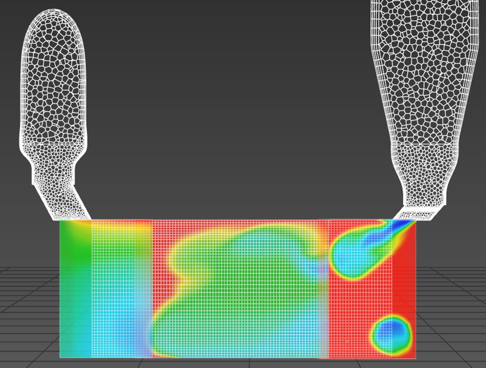 Überlagerung von drei Momentaufnahmen der Strömungssimulation