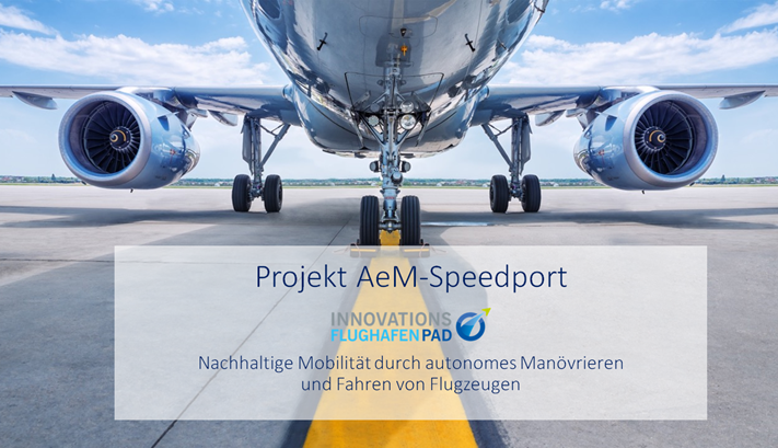 Ziel des Projekts AeM-Speedport ist es, autonome und vernetzte Fahrzeuge für den Bodenverkehr an Flughäfen zu erproben. Dadurch soll die Sicherheit und Effizienz erhöht und der CO2-Ausstoß reduziert werden, da die Flugzeuge nicht mehr mit eigenem Antrieb zur Startposition rollen müssen. Seitens des Deutschen Zentrums für Luft- und Raumfahrt ist das Institut für Flugführung an der Definition der Anforderungen, der Umsetzung sowie der Erstellung und Validierung der erforderlichen Betriebskonzepte und Systeme beteiligt.