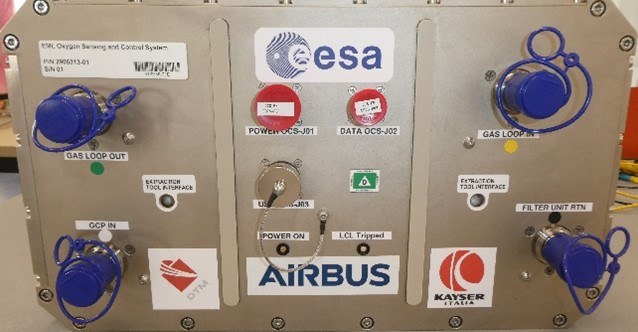 „OCS“ steht für „Oxygen Control Sensor“. Dabei handelt es sich um ein von Airbus im Auftrag der ESA gebautes Gerät zur Messung und zur Beeinflussung des Sauerstoffpartialdrucks im Elektromagnetischen Levitator (EML) der seit 2014 in Betrieb auf der Raumstation ist. Der EML dient zur berührungsfreien Messung von thermophysikalischen Eigenschaften von flüssigen metallischen Legierungen, sowie zur Untersuchung von Erstarrungsvorgängen bei tiefer Unterkühlung. Restgase in der umgebenden Prozessatmosphäre oder im Vakuum, wie Sauerstoff können einen enormen Einfluss auf diese Messungen ausüben. So können nur 30 ppm Sauerstoff die Oberflächenspannung von z.B. flüssigem Eisen um mehr als 30 % reduzieren und nur wenige feste Oxid-Partikel können den Zustand der Unterkühlung als Ganzes verhindern.