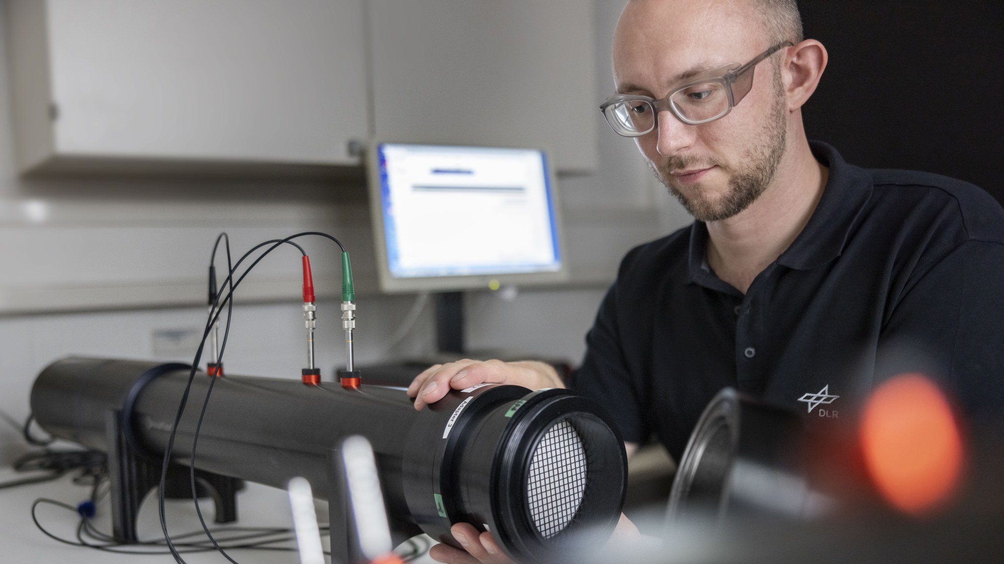 Ein Mitarbeiter beim Einbau einer Probe in das Impedanzrohr.