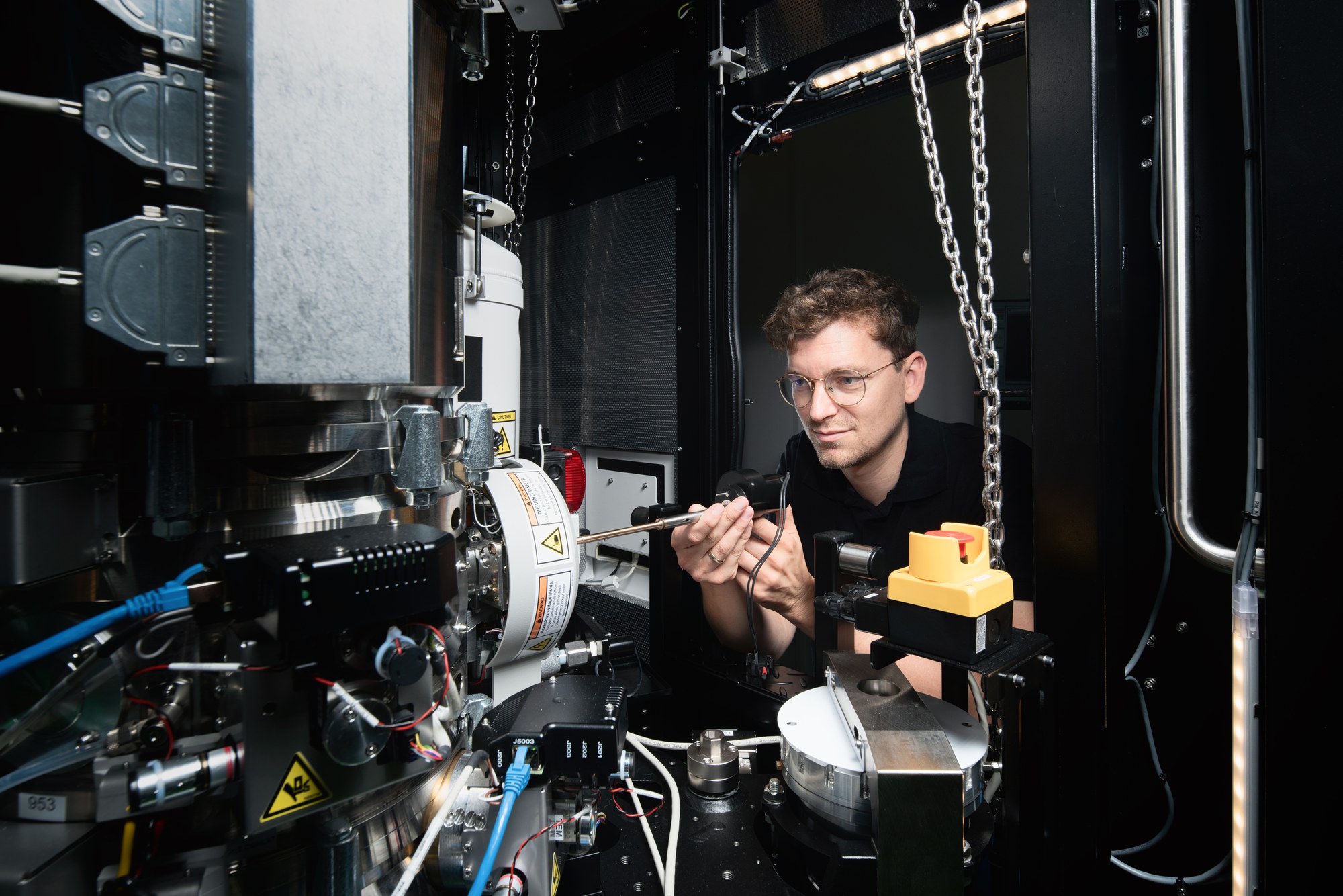 Mitarbeiter beim Einsetzen der Probe in das Mikroskop