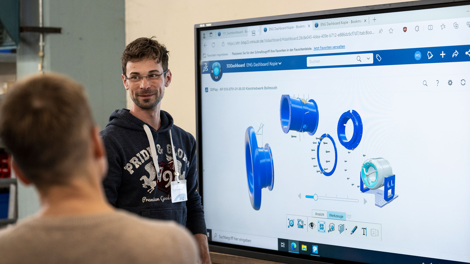 Mit Hilfe des Programms 3DExperience vermittelt das Systemhaus Technik im Rahmen der Hausmesse, wie es die technischen Lösungen der Kundenanforderungen plant und umsetzt.