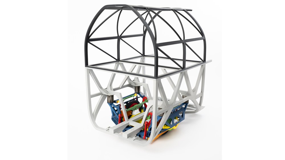 Vom Systemhaus Technik wird die Federung des Radträgers mittels Blattfedern, sowie die Sensorik zur Messung der Bewegungen und Belastungen des Fahrwerks eingebracht. Die Herausforderungen hierbei sind die schon bestehende Konstruktion des Fahrwerks an sich, der beengte Bauraum bei gleichzeitig hohen Lasten als auch der fertigungsbedingte Spielraum – gerade der großen Schweiß-Rahmen.