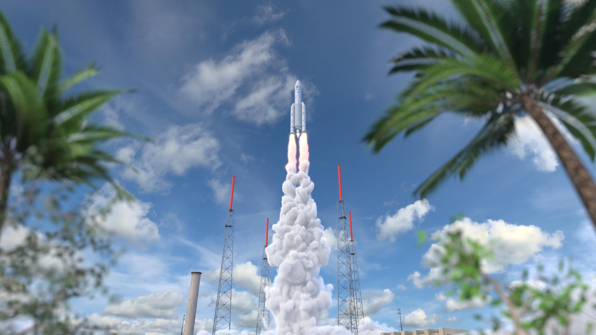 Künstlerische Darstellung des JUICE-Starts mit der Ariane 5 ECA vom Centre Spatial Guyanais (CSG)