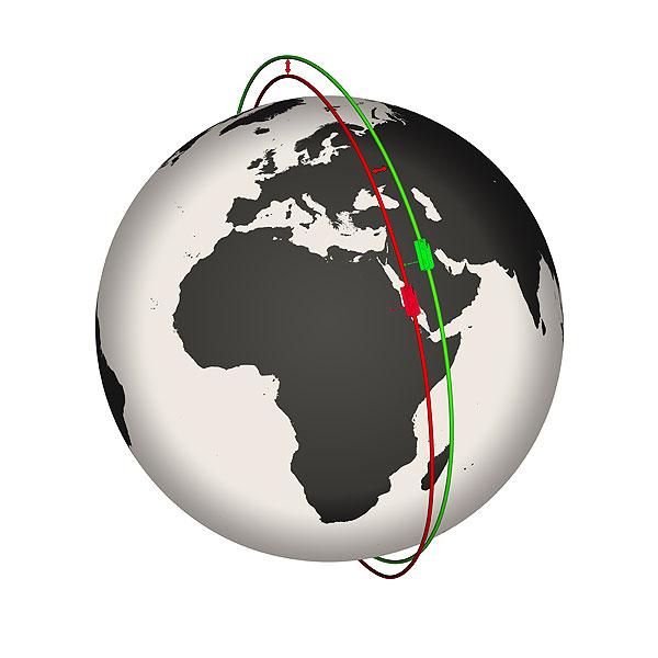 Die Umlaufbahnen von TerraSAR-X und TanDEM-X sind wie die Stränge einer Doppelhelix gegeneinander verdreht. Sie liegen so im Raum, dass sie über dem Äquator horizontal und über den Polen vertikal versetzt sind. Dadurch kreuzen sich die Bahnen niemals und die Satelliten können beliebig in Flugrichtung gegeneinander verschoben werden. Die schrauben- oder helixförmige Bewegung der Satelliten ermöglicht so einen sicheren Betrieb ohne die Notwendigkeit einer autonomen Kontrolle.