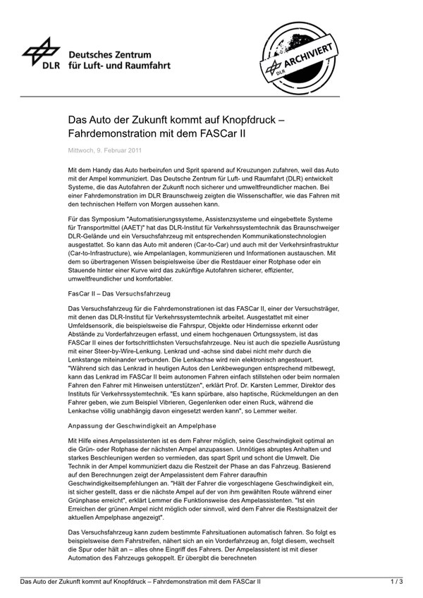 Das Auto der Zukunft kommt auf Knopfdruck – Fahrdemonstration mit dem FASCar II