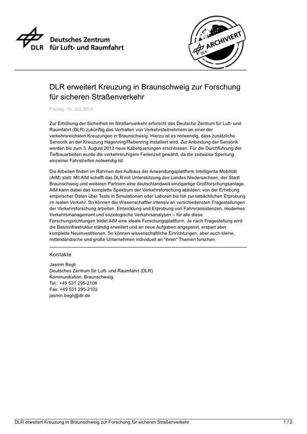 DLR erweitert Kreuzung in Braunschweig zur Forschung für sicheren Straßenverkehr