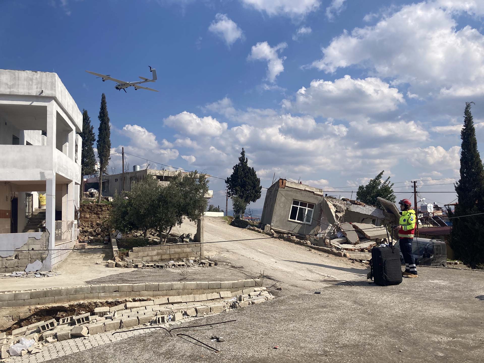Das luftgestützte Kamerasystem MACS-nano überfliegt im Februar 2023 das Erdbebengebiet in Kirikhan im Süden der Türkei. Die Luftbilder des Erdbebengebietes wurden direkt an das UN-Einsatzführungssystem weitergeleitet. Durch dieses Live-Mapping standen Einsatzkräften vor Ort wichtige Informationen unmittelbar zur Verfügung.