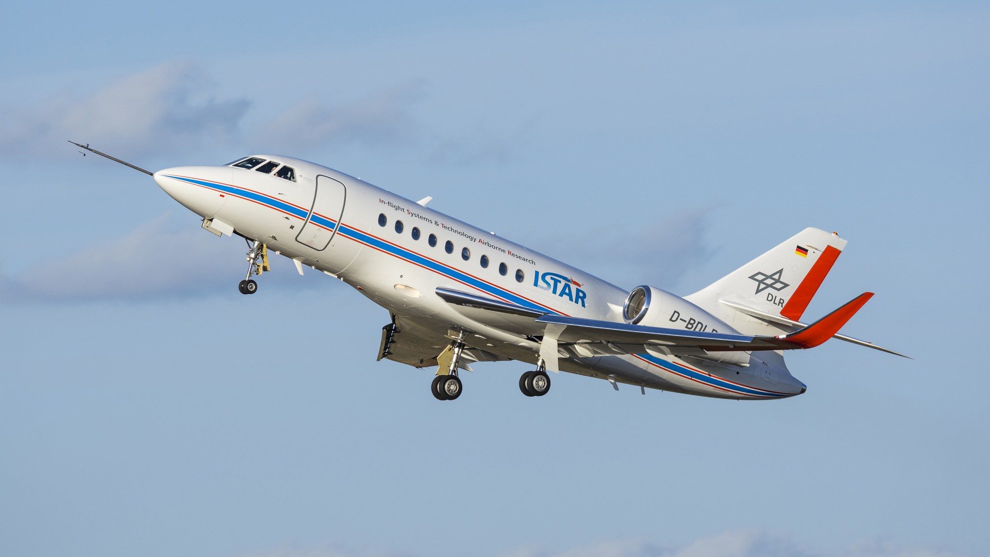 DLR-Forschungsflugzeug ISTAR (In-flight Systems & Technology Airborne Research) mit Nasenmast.