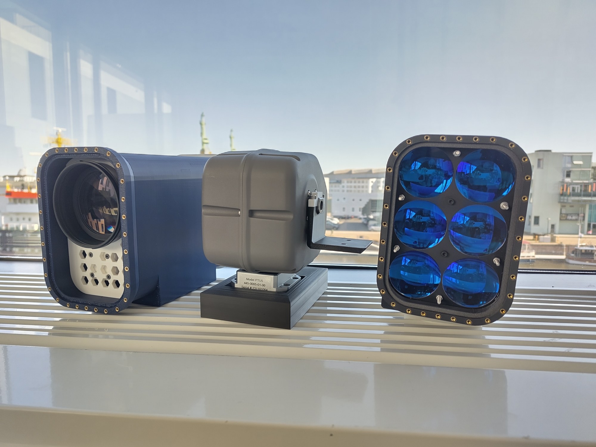 The TRAGVIS sensor from the Institute for the Protection of Maritime Infrastructures is a miniaturised range-gated sensor which, in contrast to existing systems, can also be used on small vehicles thanks to its small installation space and low weight. Examples of applications include use on rescue boats, on a helicopter or in small motor vehicles.