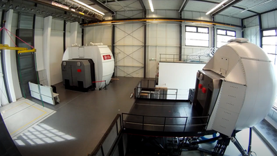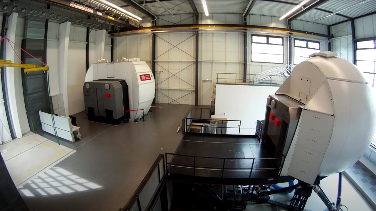 Fliegender Wechsel am Simulatorzentrum AVES (Air Vehicle Simulator) am DLR-Standort in Braunschweig. Die neue Anlage hält einen dynamischen und einen statischen Simulator bereit, zwischen denen die originalgetreu nachgebauten Cockpits eines Airbus A320 sowie eines Eurocopters vom Typ EC-135 ausgetauscht werden können.