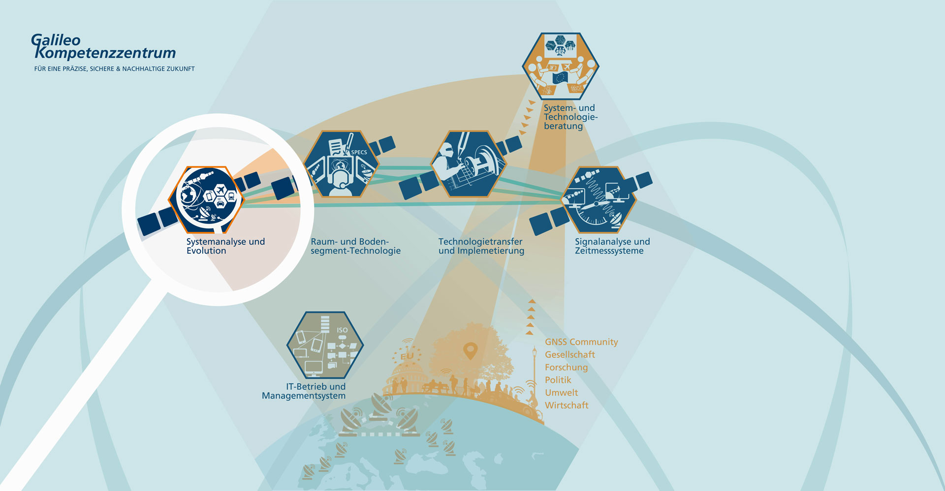 Zu den wesentlichen Aufgaben innerhalb des Galileo Kompetenzzentrums zählen: