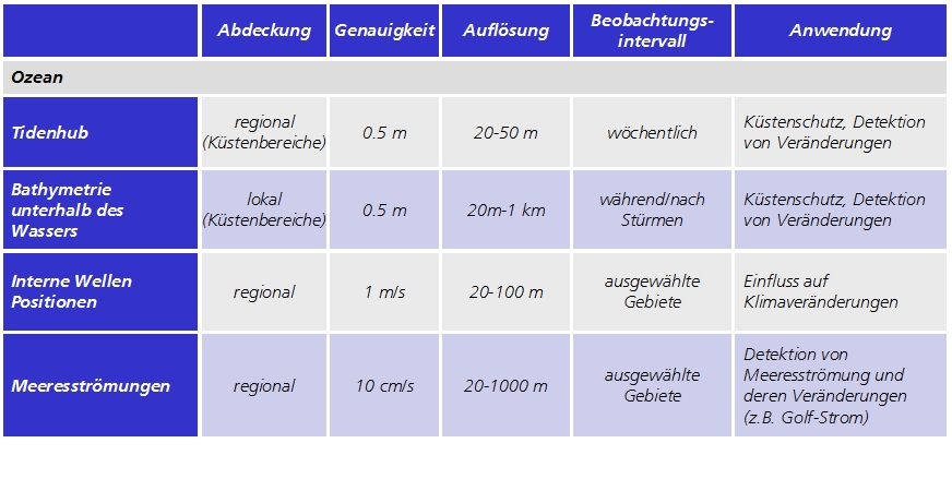 Weitere Anwendungen von Tandem-L für die Untersuchung von Prozessen aus der Hydrosphäre, speziell auch im Bereich der Ozeanographie, sind: