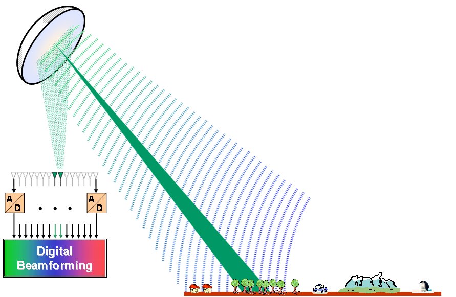 Derzeit finden intensive Forschungsarbeiten statt um eine neue Generation von Mehrkanal-SAR-Systemen zu schaffen. Die hauptsächliche Neuerung dieser zukünftigen Generation von SAR-Systemen ist die Verwendung von mehreren Kanälen in Elevation und/oder Azimut, und die Kombination der Kanäle mit Digital Beamforming (DBF). Dies erlaubt es mehrere dynamische Empfangsantennenkeulen zu generieren. Bei Mehrkanal-SAR-Moden werden eine oder mehrere digitale Empfangskeulen generiert, von denen jede ein eindeutiges Entfernungssegment auf dem Erdboden abdeckt. Durch Ausnutzen der Digital Beamforming Eigenschaft können diese Empfangskeulen aus dem aufgezeichneten Echosignal gebildet werden ohne dass analoge Empfangskeulenformung notwendig ist. Zusätzlich können diese Empfangskeulen in Elevation geschwenkt werden, um dem Echo auf dem Boden zu folgen.