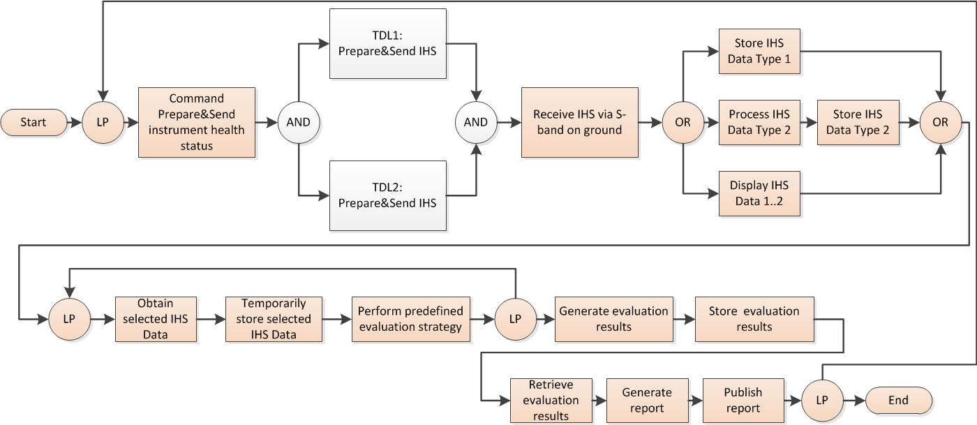 Beispiel für ein funktionales Blockdiagramm: Überwachung des Gesundheitszustands von Satelliten.