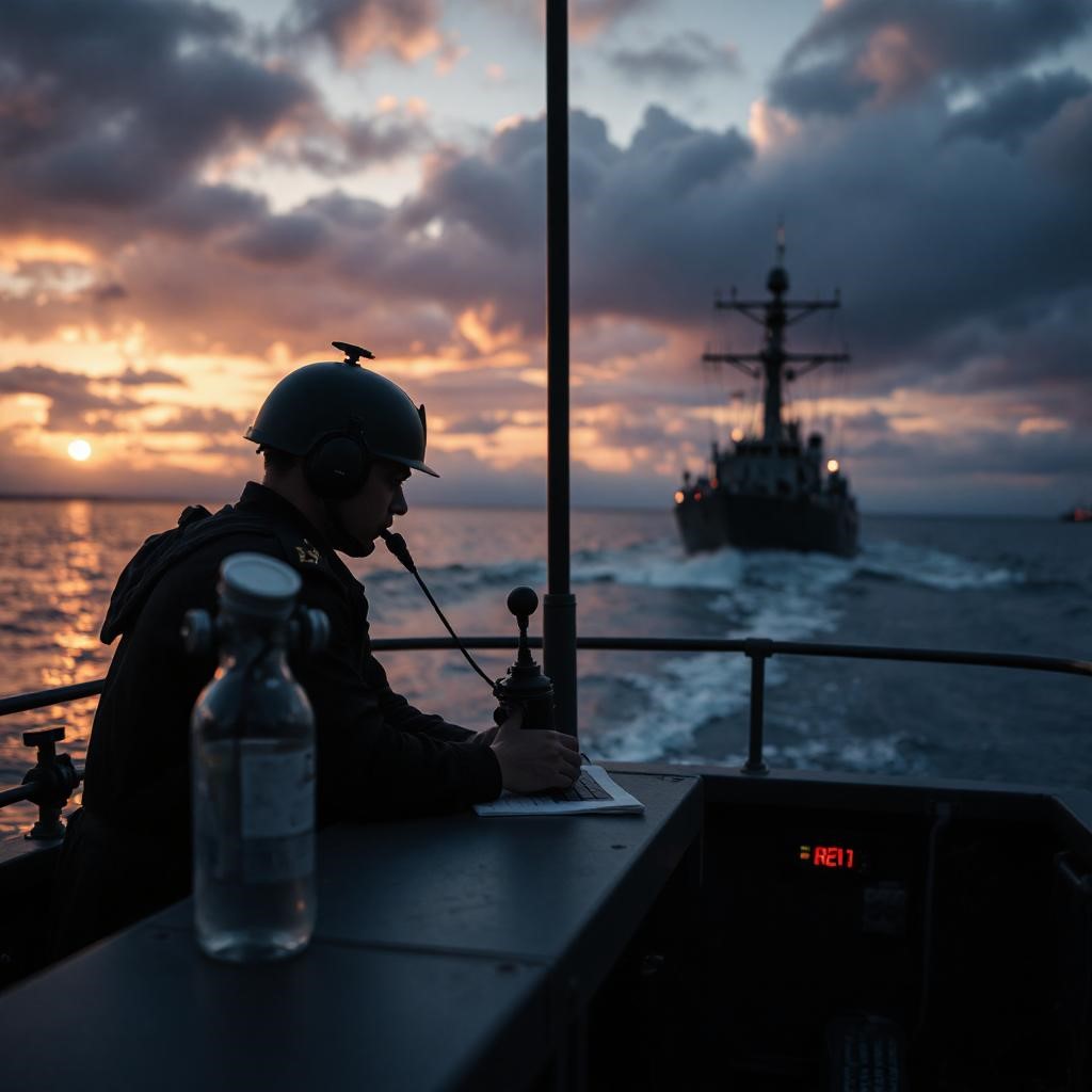 Symbolbild, KI-generiert: Funkverkehr zwischen Schiffen