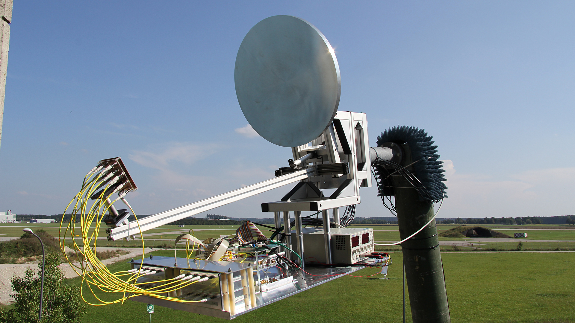 Um den Vorbeiflug eines LEO-Satelliten zu simulieren wurde die Antenne auf einem Drehteller montiert.