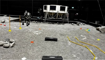 Diese zentrale Frage stand im Mittelpunkt einer dreitägigen Testkampagne im LUNA-Mondzentrum in Köln. Ein Team aus dem Deutschen Zentrum für Luft- und Raumfahrt (DLR) und der Europäischen Weltraumorganisation ESA erprobte erstmals die vollständige Kommunikationskette zwischen der LUNA-Mondsimulationsanlage mit dem lokalen LUNA-Kontrollraum und dem Kontrollraum in der luft- und raumfahrtmedizinischen Forschungsanlage :envihab des DLR-Instituts für Luft- und Raumfahrtmedizin. Dabei absolvierte eine Testperson im LUNA-Raumanzug einen speziell entwickelten Hindernisparkour im Mondregolith in der LUNA-Anlage.