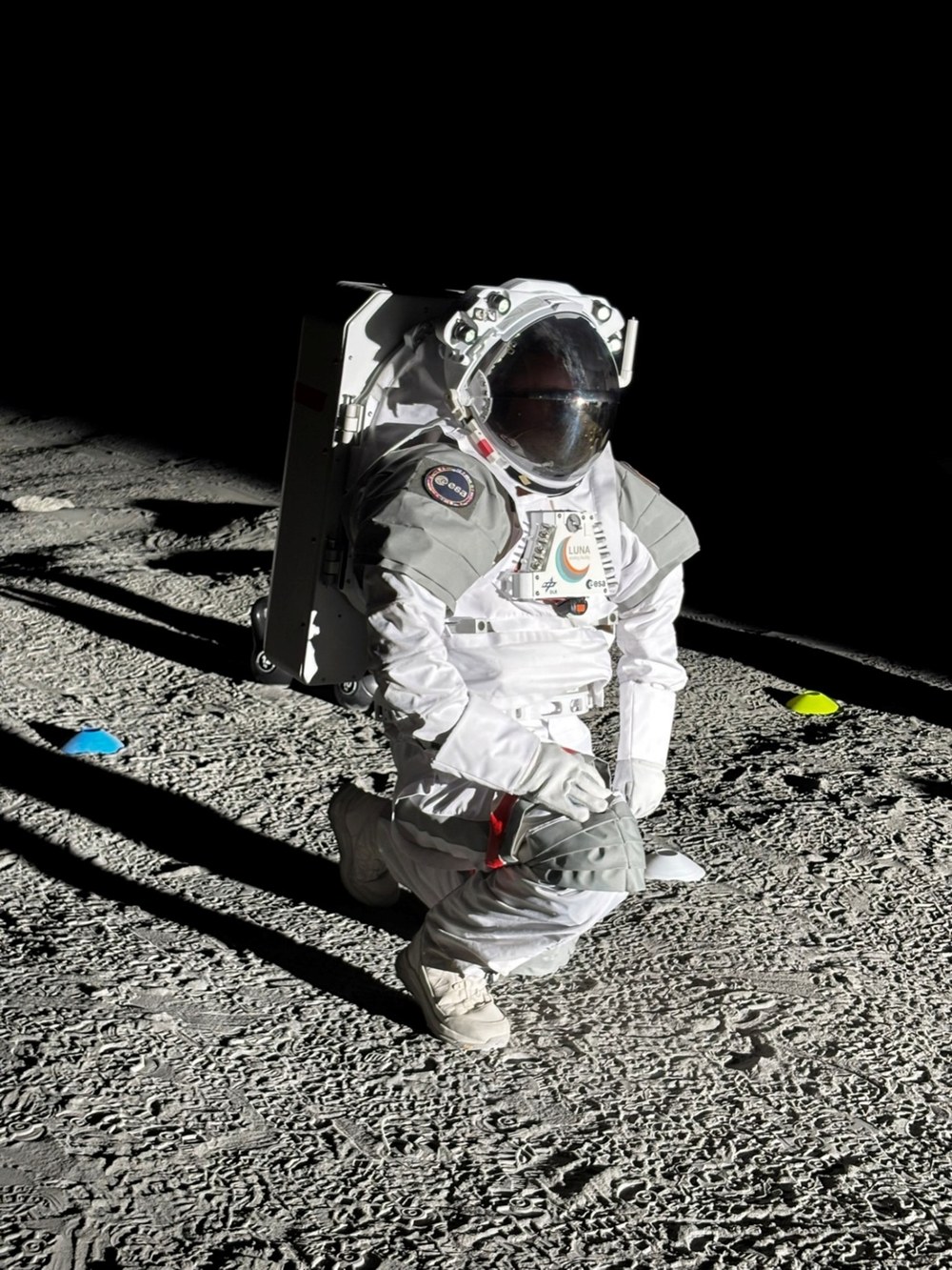 Am ersten Tag standen Aufbau, Sicherheitseinweisung und erste Übungen ohne Raumanzug im Fokus. Dabei wurde vor allem überprüft, ob die Kommunikation zwischen LUNA, dem lokalen Kontrollraum und dem benachbarten :envihab reibungslos funktioniert. Am zweiten Tag wurde der komplette Parkour erstmals im Raumanzug durchlaufen. Sechs unterschiedliche Aufgaben – von einem geschwungenen „S-Pfad“, einer Hell-Dunkel-Passage mit simuliertem tiefem Sonnenstand, einem Slalom mit Gewichten, bis hin zu Arbeiten in kniender Position oder mit Werkzeugen – wurden sicher und erfolgreich absolviert. Am dritten Tag wurden Abläufe routinierter, Durchführungszeiten kürzer und das Team agierte spürbar eingespielter.
