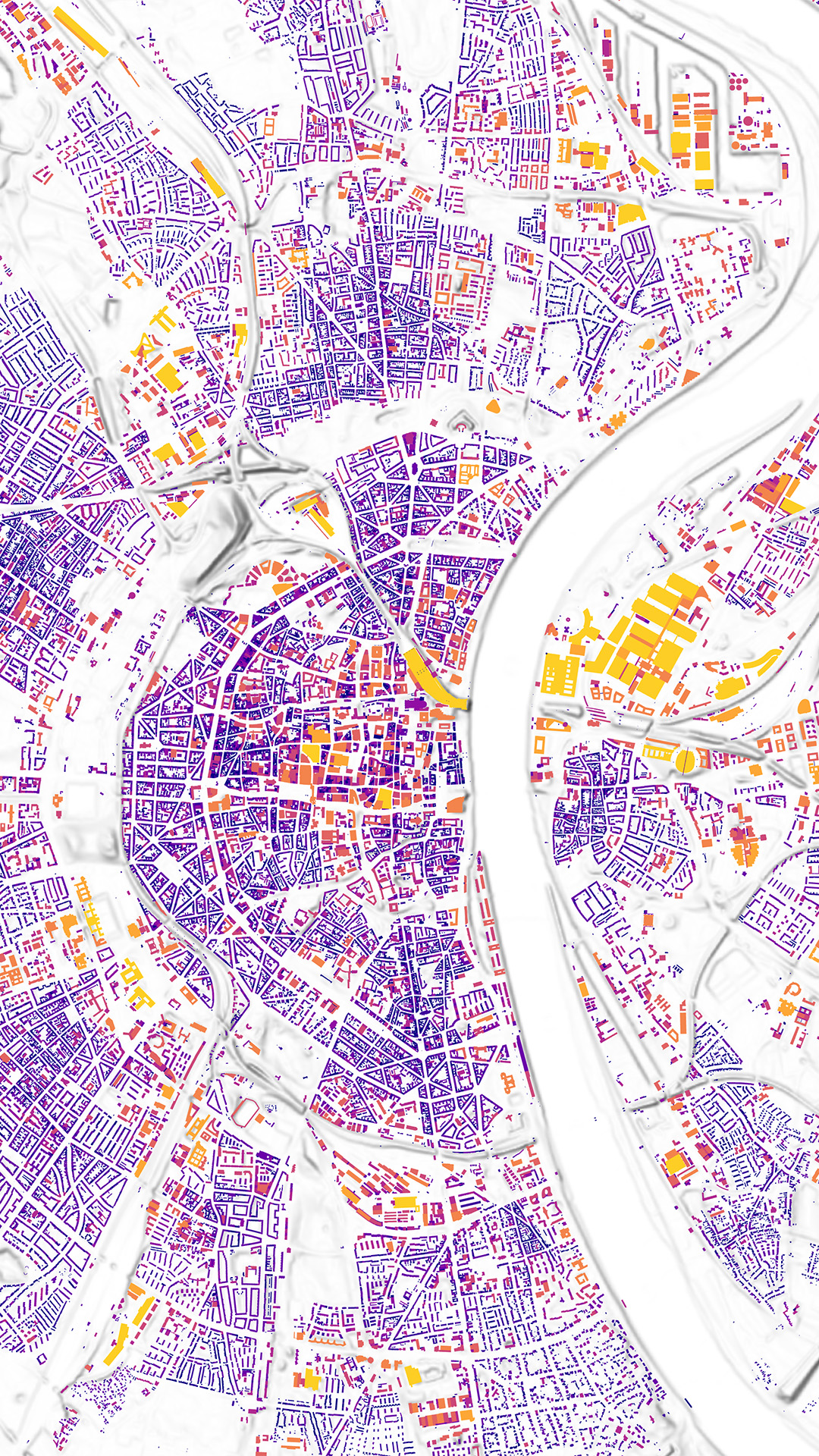 Mit EO Solar wurde das Solarpotenzial von Dachflächen in den Gemeinden erstmals deutschlandweit erhoben. Bisherige öffentliche Solarkataster sind auf bestimmte Gebiete beschränkt oder nicht sehr detailliert. EO Solar verwendet digitalisierte Oberflächenmodelle des Geländes (hier am Beispiel Köln) mit einer räumlichen Auflösung von einem Meter anstelle komplexer Gebäudemodelle mit detaillierten Angaben zu Geometrie, Neigung und Ausrichtung jeder einzelnen Dachfläche. Verschattungen durch Bäume und das umgebende Gelände werden berücksichtigt. Auch das Potenzial von Freiflächen lässt sich so berechnen.