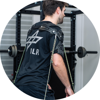 Im Weltall könnten die Astronautinnen und Astronauten in das Gerät hineinschweben. Im Kölner Labor klettern die Testpersonen von unten durch den Rahmen. Die Füße werden über Fahrradschuhe in Halterungen fixiert, ein handelsüblicher Fahrradsattel sorgt für Sitzkomfort und eine Art Rucksack hält den Oberkörper an der Rückenlehne fest. Das alles ist wichtig, damit sich in Schwerelosigkeit niemand aus dem ATHLETIC-Gerät herauskatapultiert. Oder das ganze Gerät durch das Raumschiff schießt. Andi ist nach einigen Minuten im Exoskelett justiert. Er macht zuerst ein kleines Warm-up, um sich mit den Bewegungsabläufen anzufreunden. Dann wird es ernst: Kniebeugen, zehn ... zwanzig ... , anschließend Sprünge im Liegen. „Das Gerät ist jetzt so eingestellt, dass beim Sprung quasi 100 Prozent des Körpergewichts wirken“, sagt Jonas Böcker. Es wäre auch mehr drin. Für Fitnessprofis: In der Beinpresse sind maximal 300 Kilogramm möglich.