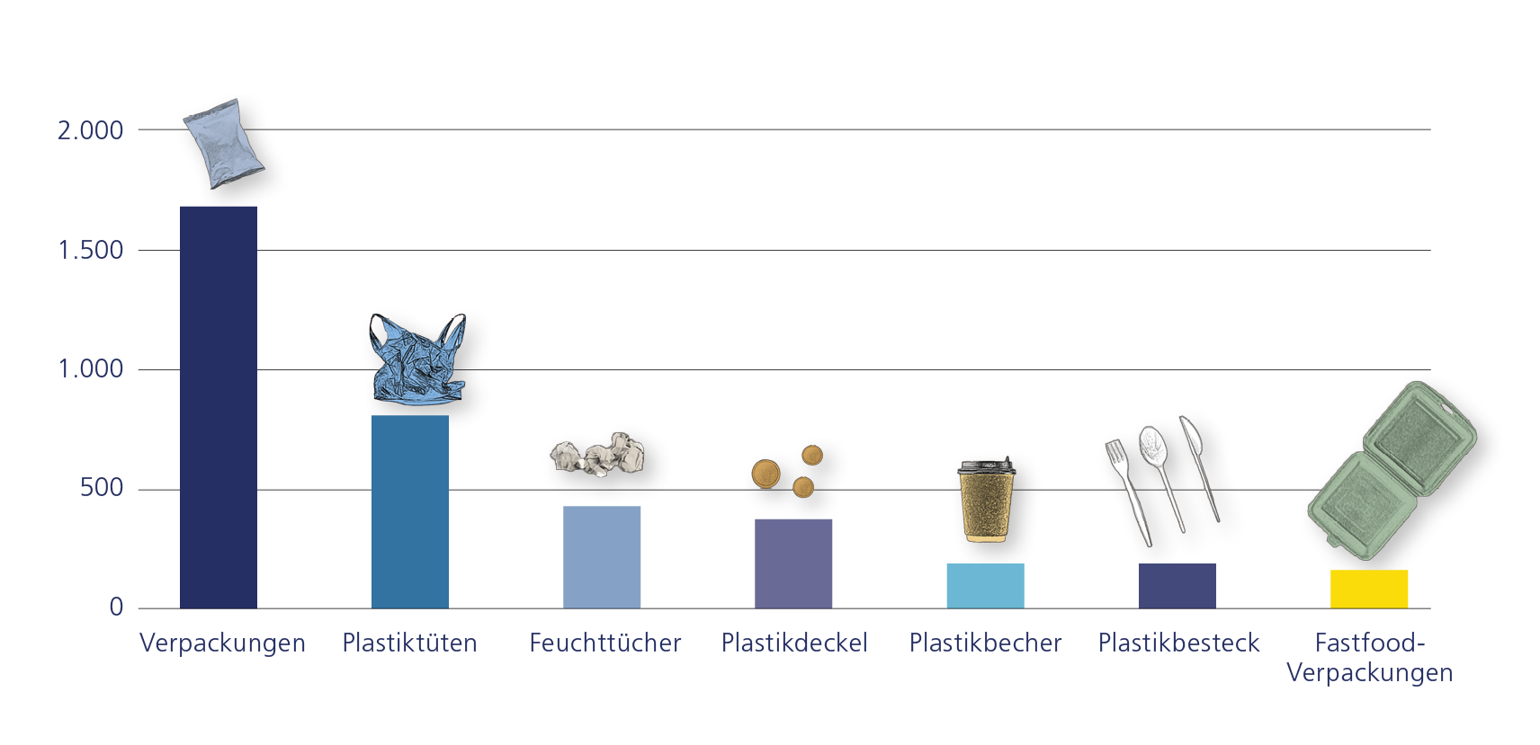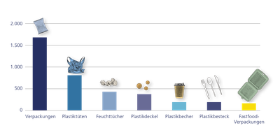 Anzahl an Einwegartikeln, die bei den Probennahmen im Herbst 2019 und im Frühjahr 2020 gefunden wurden