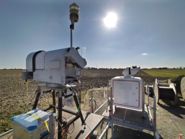 Das Lidar am Boden erfasst den Wind in bis zu 2.000 Meter Höhe. Das Mikrowellenradiometer misst Temperatur und Luftfeuchte bis in 10 Kilometer Höhe.