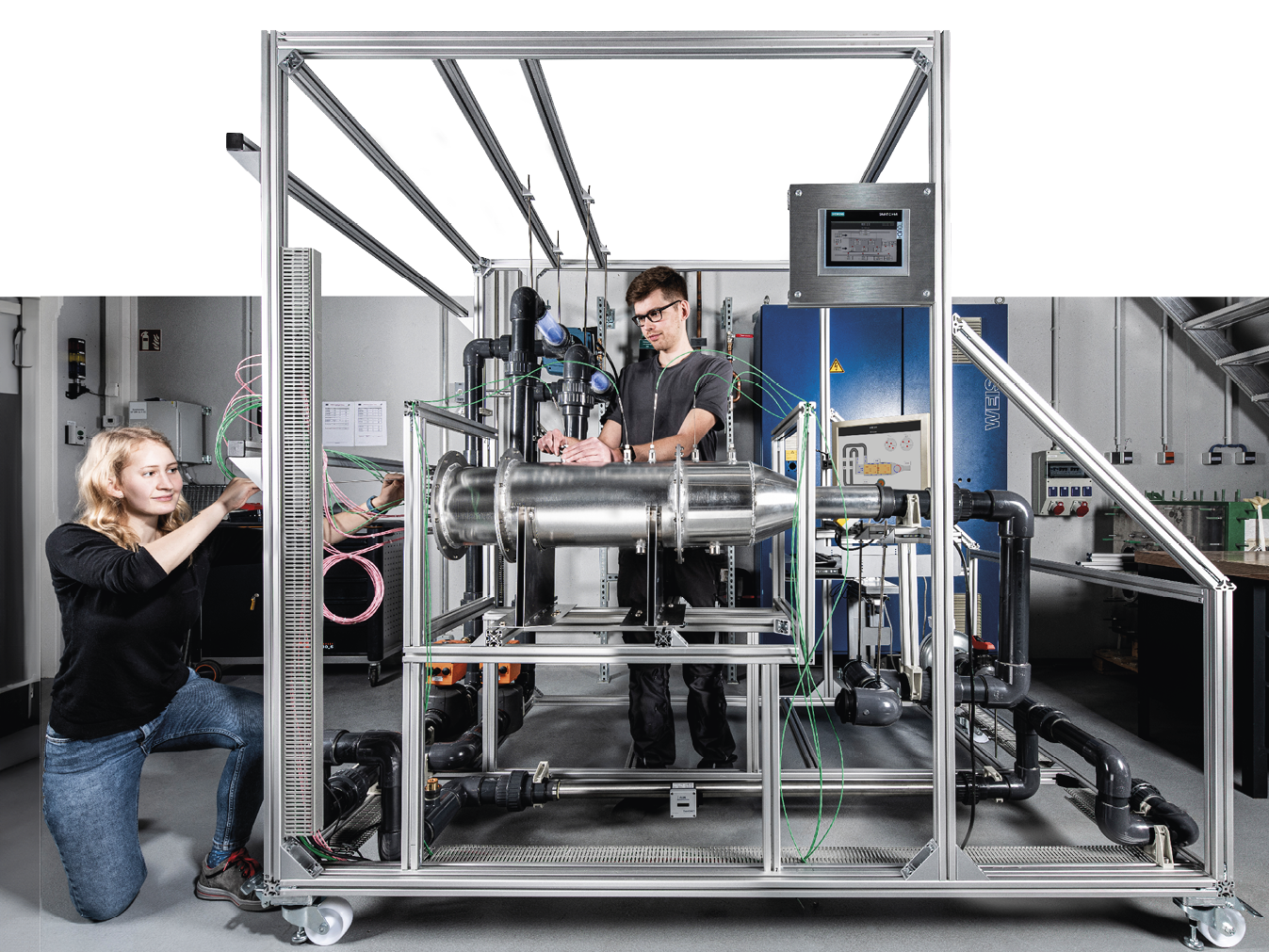 Im Labor in Stuttgart werden die Sensoren für einen Testlauf des keramischen Wärmespeichers vorbereitet.