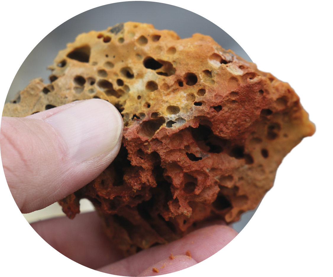 Schwefelhaltige Dämpfe färben das schwarzgraue Vulkangestein orange. Rund 60 Kilogramm vulkanische Proben wurden für Analysen ins Planetenspektroskopie-Labor des DLR in Berlin gebracht.