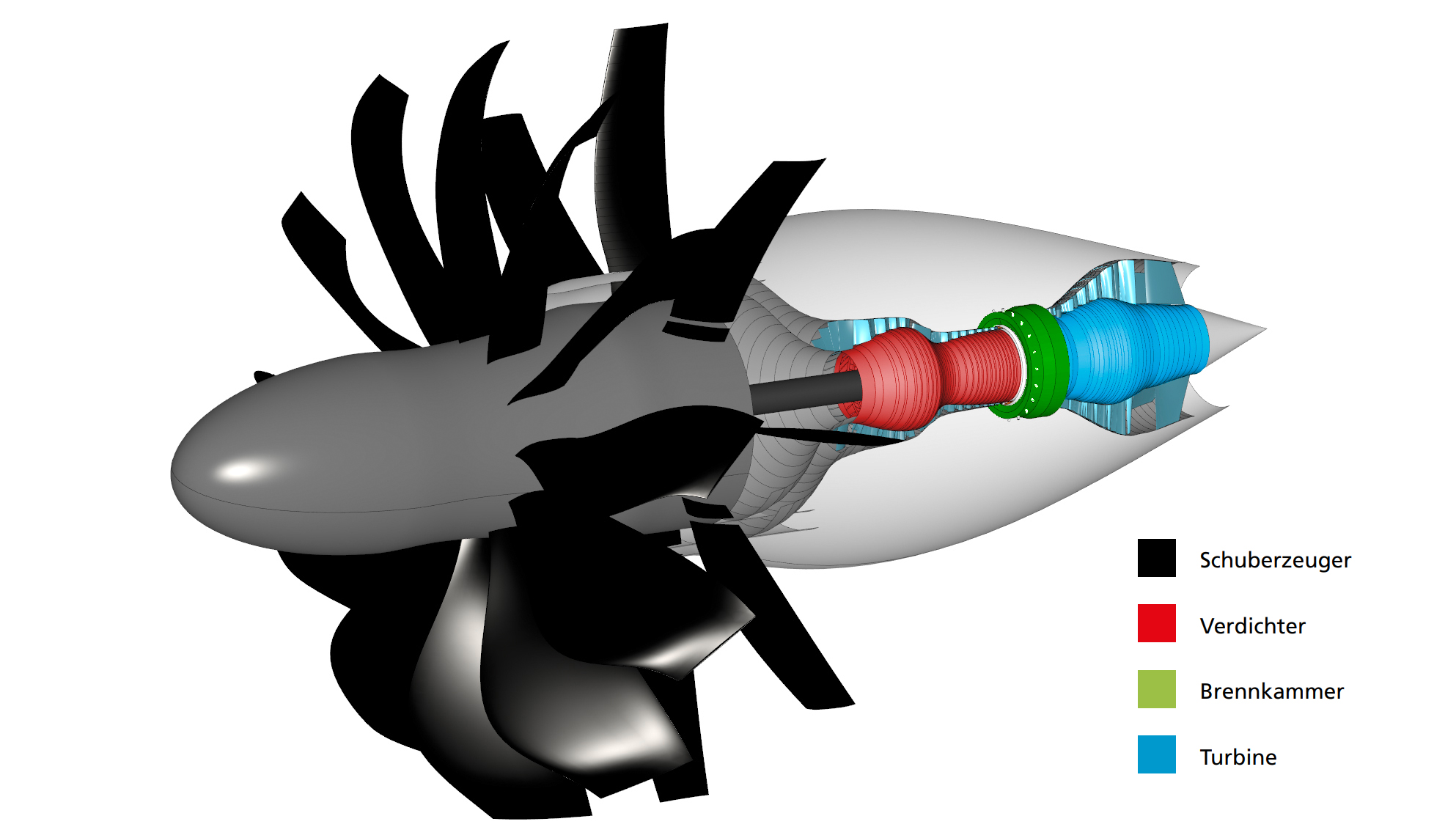 Gegenläufige, offene Antriebe (Open-Fans) sind noch nicht im Einsatz.
